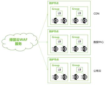 數據中心:此類數據中心為獨立的數據中心機房,可以由電信運營商或其他ISP來提供。綠盟云WAF可以靈活部署在數據中內,給某一類特定用戶,如行業類用戶、某一地理區內用戶提供更好體驗的服務。