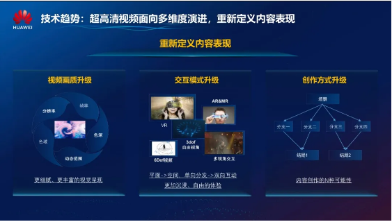 從發(fā)展趨勢看,高新視頻自身正在面臨著視頻畫質、創(chuàng)作方式、交互模式三個維度的升級,這三個維度重新定義了視頻內容表現(xiàn)。