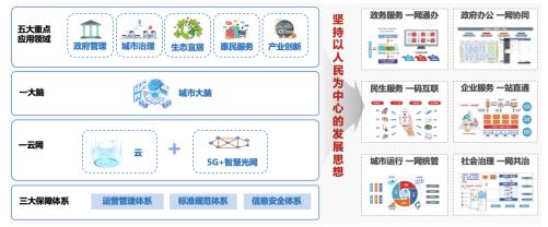 1張融合的云網(wǎng)、1個城市大腦、3大保障體系,服務(wù)于政府管理、城市治理、生態(tài)宜居、惠民服務(wù)、產(chǎn)業(yè)創(chuàng)新5大領(lǐng)域,實現(xiàn)了包括政務(wù)服務(wù)一網(wǎng)通辦、政府辦公一網(wǎng)協(xié)同、民生服務(wù)一碼互聯(lián)、企業(yè)服務(wù)一站直通、城市運行一網(wǎng)統(tǒng)管、社會治理一網(wǎng)共治理的“6個1”。5G和智慧光網(wǎng)絡(luò)、城市大腦成就了“云數(shù)通衢、大智武漢”。