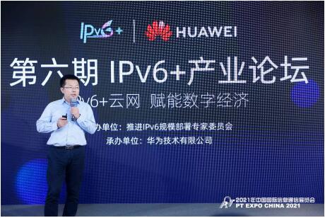 飛象網訊 2021年9月27日下午,“第六期IPv6+產業論壇”與北京“2021 年中國國際信息通信展覽會”(PTEXPO CHINA 2021)同期舉行,本次論壇由推進IPv6規模部署專家委員會主辦,華為技術有限公司承辦,論壇以“IPv6+云網,賦能數字經濟”為主題,邀請全國數十位行業專家、學者匯聚一堂,交流“IPv6+”在數字經濟場景下的產業政策、戰略和實踐,深化產業共識,促進“IPv6+”在全行業的創新及落地,從而進一步推動IPv6網絡加快規模部署。