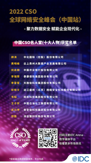 數字時代, CSO 是未來企業可持續發展戰略中必不可少的角色。目前,國內企業對于CSO群體的認知尚處于初級階段。因此,“中國CSO名人堂(十大人物)”的入選者更顯珍貴,他們不僅彰顯了CSO對企業發展的價值和重要性,同時也對網絡安全從業者起到了職業發展的示范和引導作用,更能幫助企業管理者樹立正確的安全觀,帶動安全技術變革和組織戰略調整的正確節奏。