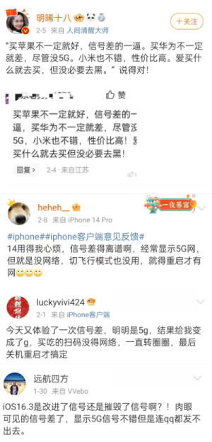 除了網(wǎng)絡(luò)覆蓋,對手機(jī)5G網(wǎng)絡(luò)體驗產(chǎn)生直接影響的還有5G基帶芯片。以蘋果iPhone為例,得益于蘋果自研的A芯片和iOS系統(tǒng),iPhone長久以來都被奉為手機(jī)體驗的天花板,但要說iPhone信號差也是出了名的。蘋果的5G手機(jī)雖然搭載了蘋果自研的A處理器,但是蘋果沒有自研的5G集成芯片,只能選擇外掛的方式,但效果并不太好,尤其是iPhone13和iPhone14手機(jī),經(jīng)常被吐槽信號太差。