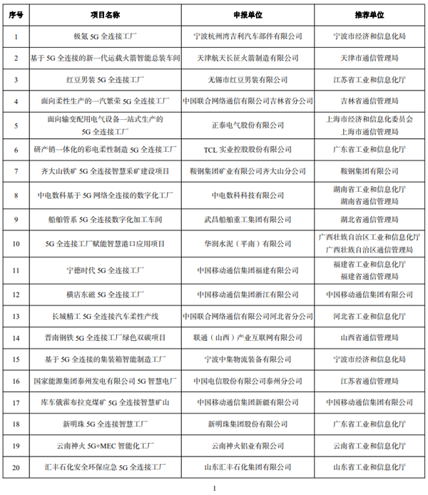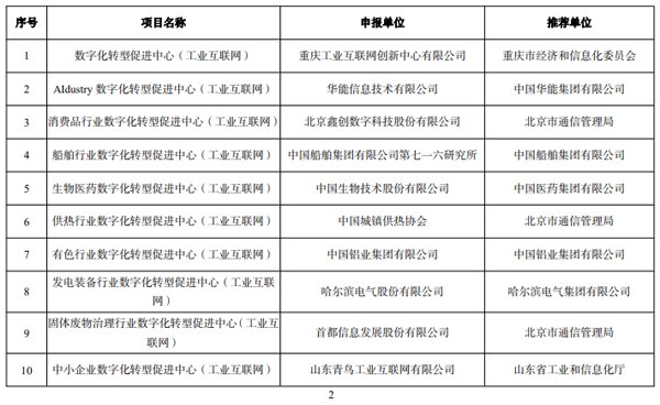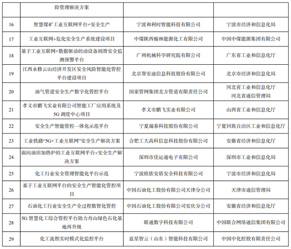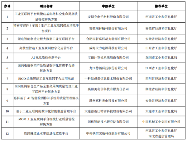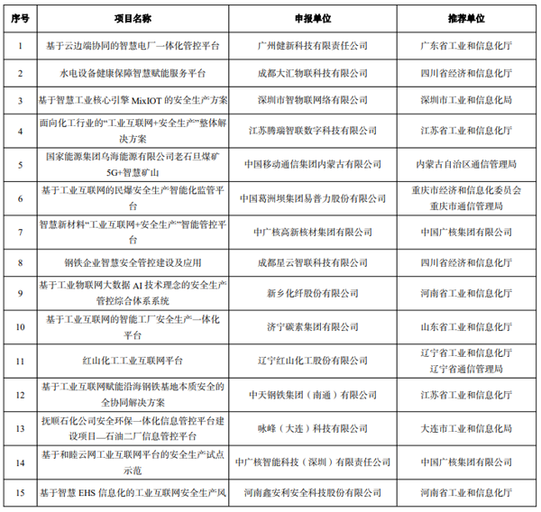 2022 年工業互聯網試點示范公示名單