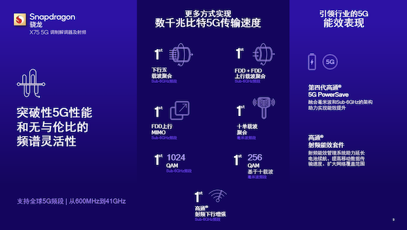 以往的產品中,高通驍龍5G調制解調器的全網通能力讓全世界的用戶都能用上5G,隨著驍龍X75的推出,想必在未來,用戶不僅僅能連接5G,更是將能夠時刻獲得最佳的5G網絡體驗,條條頻段通5G,時時刻刻高速率。