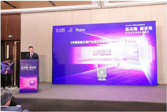 隨后進入了本次論壇的發布環節,中國信息通信研究院華東分院廖運發副院長發布了國內首個全產業鏈圖譜《中國智能計算產業鏈生態圖譜(2023)》,為業內發展提供更為專業直觀的行業指導,有助于引導園區、地方政府等主體開展建鏈、補鏈、強鏈、延鏈。