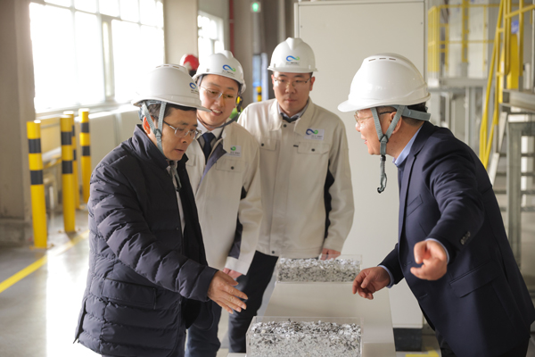 全國人大代表周云杰(左一)在海爾再循環互聯工廠調研