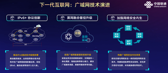 在廣域網(wǎng)技術(shù)方面,中國(guó)聯(lián)通將通過(guò)“IPv6+”協(xié)議創(chuàng)新、算網(wǎng)融合管控升級(jí)、加強(qiáng)網(wǎng)絡(luò)內(nèi)生安全來(lái)推動(dòng)下一代互聯(lián)網(wǎng)的融合演進(jìn),同時(shí)通過(guò)部署IPv6演進(jìn)技術(shù)提升互聯(lián)網(wǎng)的端到端協(xié)同服務(wù)能力,實(shí)現(xiàn)廣域網(wǎng)絡(luò)承載能力、感知能力、調(diào)度能力、安全能力增強(qiáng)。