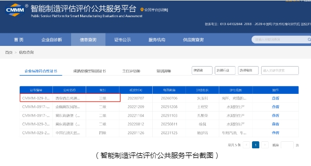 近日,西安西古光通信有限公司順利通過了國家智能制造能力成熟度評估(簡稱“CMMM評估”)專家復核,成為陜西省首批通過智能制造能力成熟度三級評估的企業。