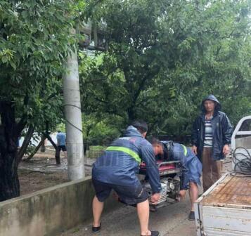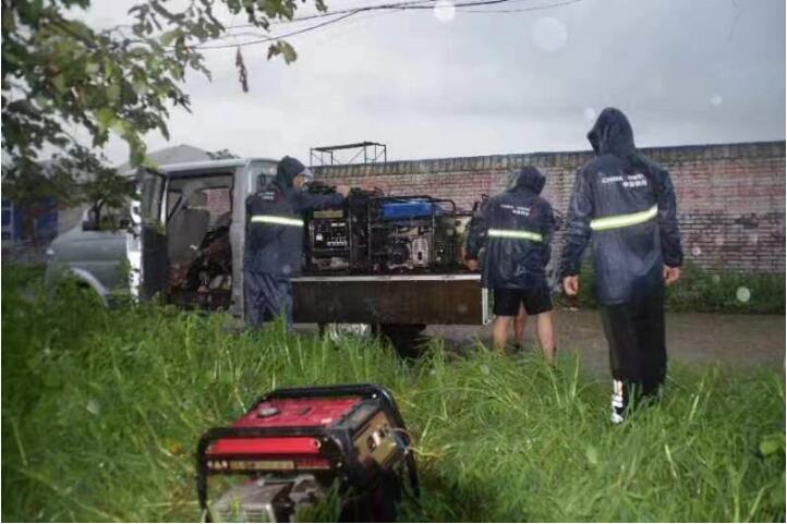 茅山營房基站帶著數千人家寬帶,保障著部隊通信,為VVIP基站,是市重點保障基站,基站電流達到400A,鐵塔黨員先鋒隊冒雨緊急調用大功率發電機3臺進行基站電力保障,路面涉水深度過膝蓋,鐵塔員工用手臺肩扛方式,把發電機及電纜放置到位,進行通信保障。在汛情來臨之際,滿順鐵塔突擊隊做到了立即趕到現場進行處理,先搶通再修復,與時間賽跑,確保通信不出現大面積阻斷。