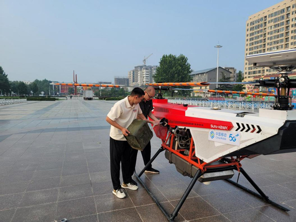 中國移動保定分公司副總經理盧剛告訴記者,本次啟用的中型無人機應急通信系統,能夠助力災情嚴重區域恢復網絡通信,可實現超過30km²的有效信號覆蓋,支持200個用戶并發業務,滿足政府抗災指揮部和附近人員密集區的基本通信需求。同時,該系統起飛要求低,對洪澇、地震等自然災害或山地、河谷、高原等地形條件都有很強的適應性,能夠滿足應急救援的突發性需求。