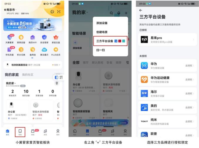 小翼管家聚焦用戶痛點,通過與美的、華為、歐普等頭部智能設備廠商的賬號授權合作,搭建起“聯動”橋梁,構建數字家庭新生態。