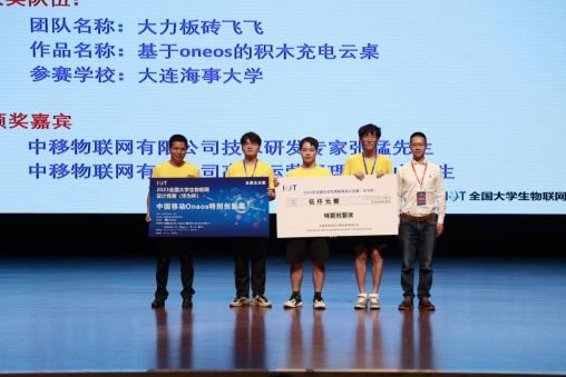 近日,由全國高等學校計算機教育研究會(以下簡稱“高等教育學會”)主辦的2023年全國大學生物聯網設計競賽總決賽在南京大學成功舉辦,OneOS賽道多支隊伍獲佳績。中移物聯網有限公司(以下簡稱“中移物聯”)作為大賽長期合作伙伴,已連續3年以OneOS物聯網操作系統作為主題合作賽道,參與大賽出題和評審工作。今年,OneOS賽道共計報名158支隊伍,為歷年之最。其中,11支隊伍進入全國總決賽,最終有3支隊伍榮獲全國一等獎,大連海事大學“基于OneOS的積木充電云桌”榮獲中國移動OneOS特別創新獎。