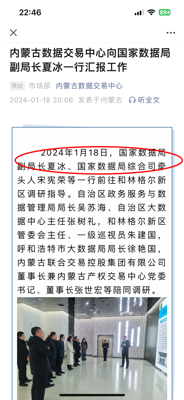 而根據“內蒙古數據交易中心”微信公眾號1月18日發布的消息,其中提到國家數據局副局長夏冰等一行前往和林格爾新區調研指導。由此可知,夏冰履行任國家數據局副局長。