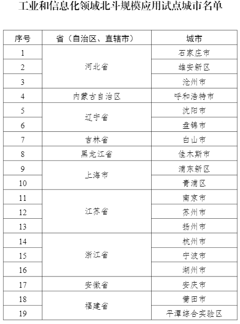 工信部公布工業和信息化領域北斗規模應用試點城市名單