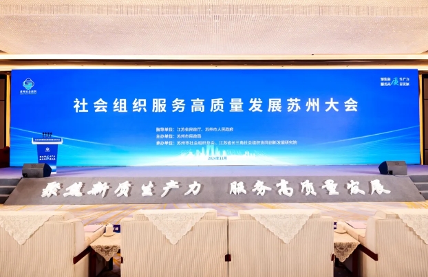 為認真貫徹黨的二十大和二十屆三中全會精神,充分發揮社會組織服務國家、服務社會、服務群眾、服務行業作用,11月12日,由江蘇省民政廳、蘇州市人民政府指導,蘇州市民政局主辦,以“聚焦新質生產力 服務高質量發展”為主題的“社會組織服務高質量發展蘇州大會”在市會議中心成功舉行。