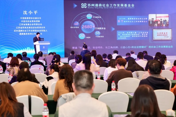 民政部社會組織管理局符策龍副局長、江蘇省民政廳謝曉軍廳長、蘇州市人民政府查穎冬副市長出席并致辭;來自蘇州市及長三角、珠三角、京津冀、成渝經濟圈的社會組織領域的專家學者和企業家代表共150余人出席會議。中國慈善聯合會副會長、通鼎集團有限公司創始人、蘇州通鼎社會工作發展基金會發起人沈小平出席會議并做主旨發言。
