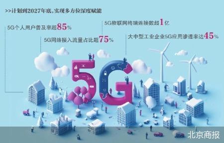 《揚帆升級方案》提出,到2027年底,構建形成“能力普適、應用普及、賦能普惠”的發展格局,全面實現5G規模化應用。其中,5G個人用戶普及率超85%,5G網絡接入流量占比超75%,5G新消費新體驗不斷豐富。面向工廠、醫院、景區等重點行業領域打造一批5G應用領航者,帶動行業數字化轉型升級。5G物聯網終端連接數超1億,大中型工業企業5G應用滲透率達45%。