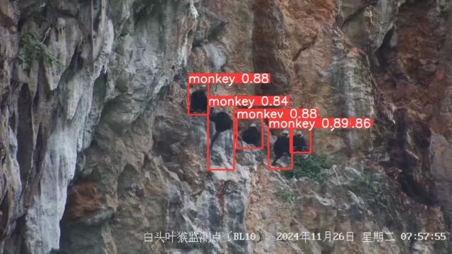 數字技術的融入,不僅提升了保護區巡護工作的效率,還為科研人員提供了詳實的數據資源以及大量白頭葉猴行為習性的報表。截至2024年11月28日,系統共識別發現白頭葉猴累計17000+次。這種將科研與保護緊密結合的模式,有助于更全面地掌握白頭葉猴的生存狀況,進而制定出更為科學合理的保護措施,為喀斯特石山地貌的生物多樣性保護與科研工作提供了有價值的參考。