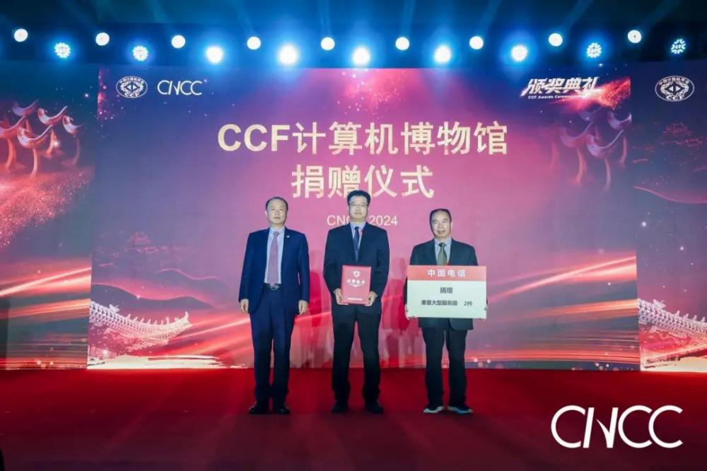 飛象網訊 10月25日,CCF頒獎典禮上中國電信向CCF計算機博物館(簡稱CCM)捐贈2臺Superdome服務器。CCF前理事長、計算機博物館首任館長梅宏,中國電信科技委副主任、科技創新部總經理王桂榮,CCF副秘書長、計算機博物館工作委員會主任臧根林出席捐贈儀式。