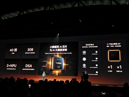 小鵬圖靈AI芯片是全球首顆可同時應用在AI汽車、AI機器人、飛行汽車的芯片,為AI大模型定制,擁有40核處理器,能夠支持高達30B參數的大模型運行,可實現主流芯片“一顆頂三顆”的效力。