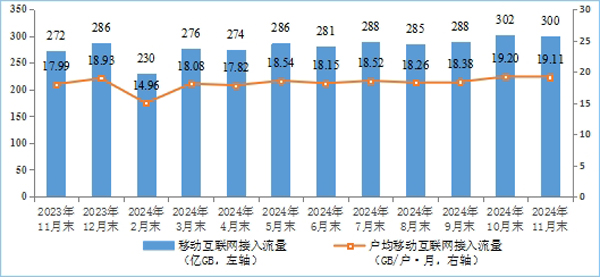 11月戶均移動互聯網接入流量達19.11GB 同比增長5.9%