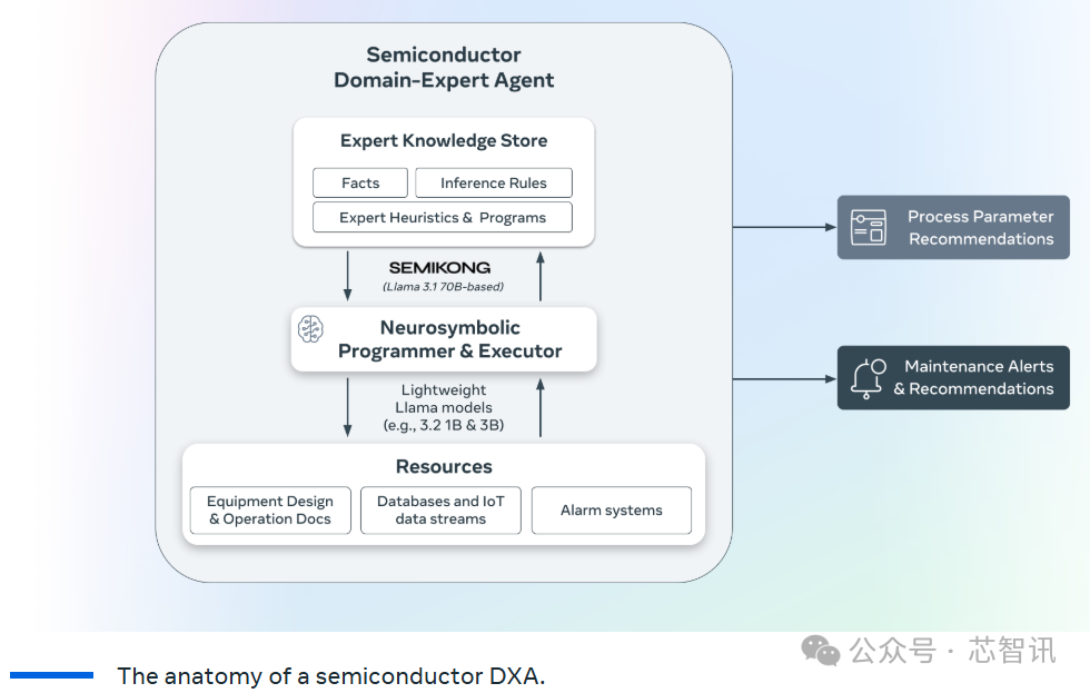 DXA(領(lǐng)域?qū)<掖恚⿲⑤^小的大語言模型與SemiKong 70B的核心功能整合,通過對客戶公司技術(shù)庫及專家工程師提供的項目進行訓(xùn)練,可以有效地捕獲和構(gòu)建了資深工程師的知識,確保關(guān)鍵專業(yè)知識得到保留和擴展以備將來使用,并且可根據(jù)公司需求進行調(diào)整。經(jīng)過訓(xùn)練的DXA能進一步整合到核心SemiKong部署中,自動執(zhí)行開發(fā)任務(wù),或充當(dāng)工程師與員工間的互動界面。