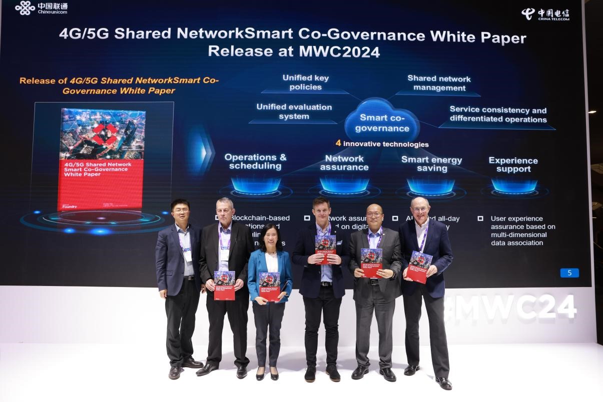 西班牙時間2024年2月26日,中國聯通、中國電信聯合華為、中興通訊、愛立信、諾基亞、中信科移動等產業伙伴在GSMA官網發布《4G/5G共享網絡智慧共治白皮書》。這是繼2023年MWC巴塞羅那發布《5G Network Co-Construction and Sharing Guide 2023》后,雙方聯合業內伙伴開展的又一重磅行動,標志著中國聯通、中國電信在共建共享領域的研究和產業化進程,已經由共建共享階段轉向智慧共治新階段。