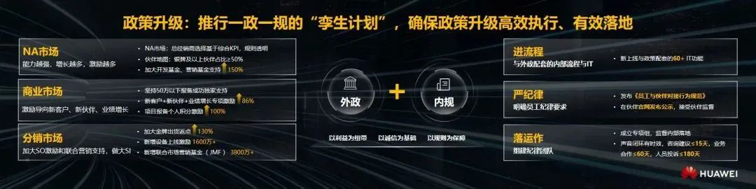 我們將進(jìn)一步滿足能力型伙伴訴求,其中伙伴地圖進(jìn)一步聚焦,由去年的12家變成5-8家;同時(shí)身份是進(jìn)入地圖的前提,卓戰(zhàn)NA要求銀牌及以上;并將加強(qiáng)伙伴標(biāo)準(zhǔn)通路管理,這個(gè)方面將提升15%。