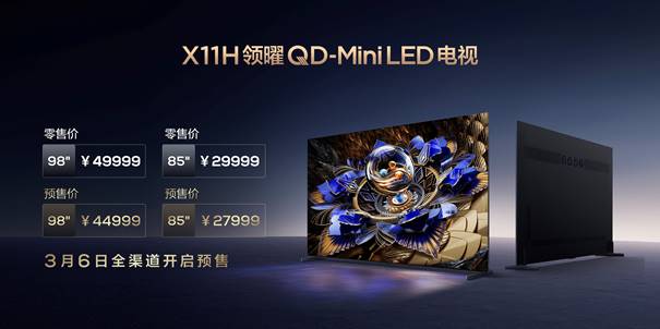 而萬眾矚目的2024畫質天花板TCL X11H則提供了85吋、98吋共兩個尺寸選擇,85吋首發預約驚喜價27999元,98吋首發預約驚喜價44999元,3月6日在全渠道正式開啟預售。Q9K的定價則讓人感受到什么叫質價比拉滿,相比Q10G Pro配置上做到了6大升級的同時,價格還實現了全面降級,預售期間,98吋、85吋、75吋、65吋、55吋實際到手價分別為:17999元、8999元、6999元、5499元和4199元。Q9K全網預售也是3月6日開啟,正式開售是3月14日晚8點。