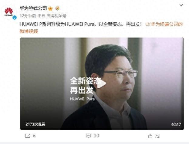 今日,華為官宣P系列品牌升級為Pura,以全新姿態,再出發!余承東稱,P系列的發展史,就是移動影像的發展史,也是科技美學的演進史。自此,P系列正式更名為Pura系列。