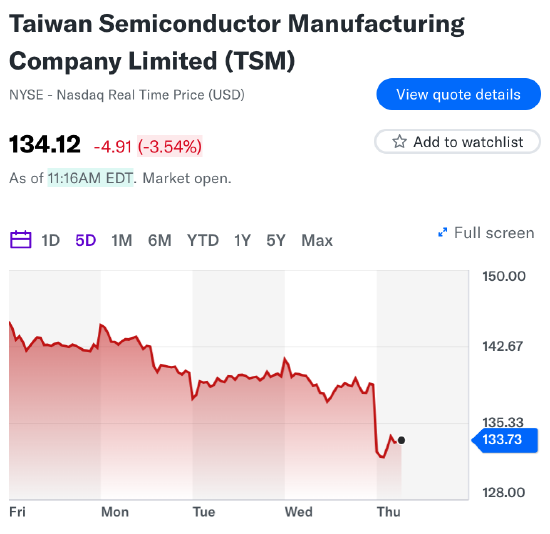 “宏觀經濟和地緣政治的不確定性依然存在,可能會影響消費者信心和終端市場需求,”魏哲家在電話會議上對分析師表示。臺積電在美國的存托憑證跌幅高達6.3%,創一年多來最大盤中跌幅。