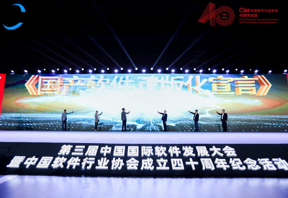 大會(huì)現(xiàn)場(chǎng),中國(guó)軟協(xié)聯(lián)合國(guó)內(nèi)基礎(chǔ)軟件、辦公軟件和工業(yè)軟件龍頭企業(yè)聯(lián)合發(fā)布《國(guó)產(chǎn)軟件正版化宣言》,倡導(dǎo)全社會(huì)共同關(guān)注和支持國(guó)產(chǎn)軟件正版化事業(yè)、共同樹立國(guó)家保護(hù)知識(shí)產(chǎn)權(quán)的良好形象、改善軟件版權(quán)保護(hù)環(huán)境、激發(fā)軟件企業(yè)的創(chuàng)新活力,推動(dòng)軟件企業(yè)和軟件產(chǎn)業(yè)的高質(zhì)量發(fā)展。