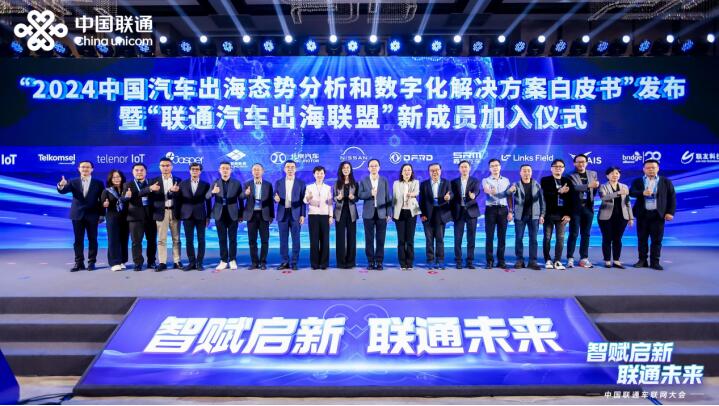 在汽車出海環節,中國聯通發布了《2024中國汽車出海態勢分析和數字化解決方案白皮書》,從國家政策、企業戰略、從產業鏈協同等方面深度分析,為汽車出海提供數字化服務領域需求分析和方案,更好的助力中國汽車揚帆出海。隨后,聯通智網科技董事長趙越、聯通國際公司董事長孟樹森、聯通研究院院長李紅五、聯通集團政企BG副總裁梁鵬、聯通汽車制造軍團軍團長周華與東風日產、北汽股份、東風研發總院、五菱新能源、鑫源汽車、Jasper、領科、挪威電信、泰國AIS、印尼Telkmsel 、橋聯盟等共計15家海內外企業舉行白皮書發布暨中國聯通汽車出海聯盟新成員加入儀式,持續擴大汽車出海力量,共促中國汽車產業全球化邁向新臺階。