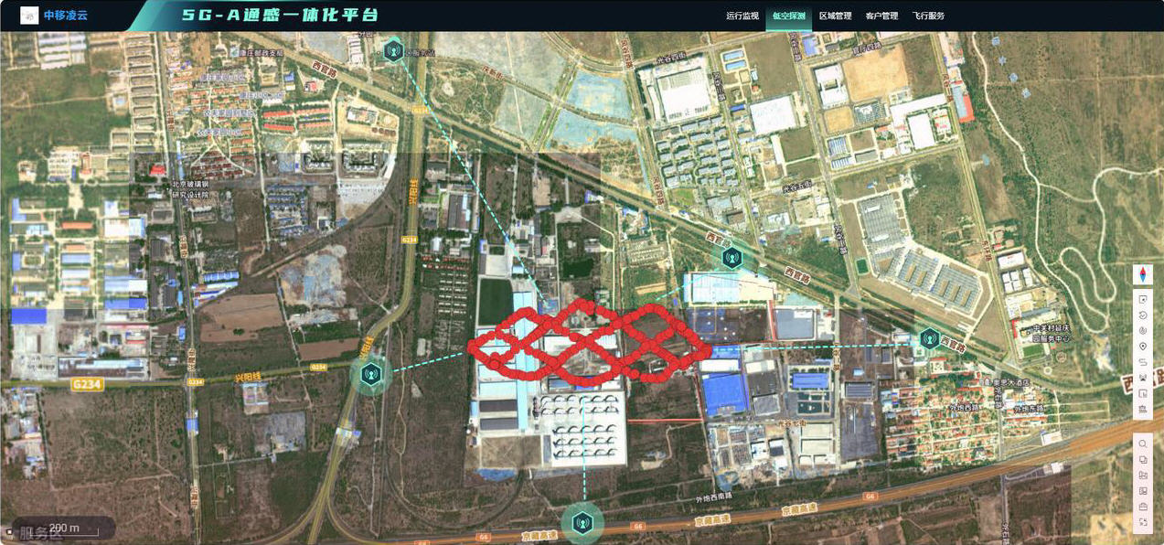 在位于延慶區(qū)的北京市民用無人駕駛航空試驗區(qū),北京移動用5座5G-A通感一體基站組成了面積為3.3平方公里(相當(dāng)于500個足球場的面積)的無縫感知5G-A覆蓋區(qū)域,結(jié)合具備低空感知、網(wǎng)聯(lián)飛行、空域管理和AI分析等多項能力的管理平臺,搭建起一套端到端低空無人機(jī)管控系統(tǒng),打造高標(biāo)準(zhǔn)無人駕駛航空示范區(qū)。