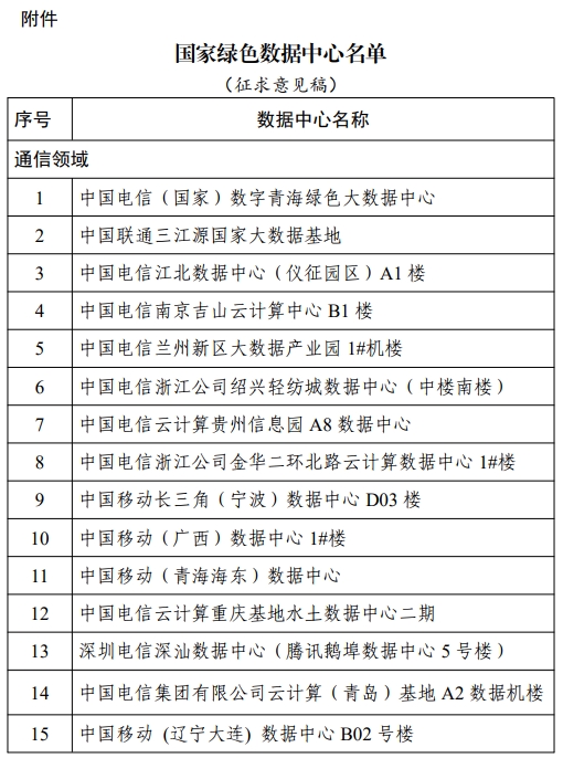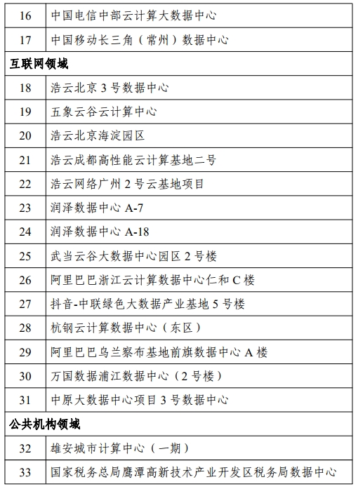 工信部公示國家綠色數據中心名單