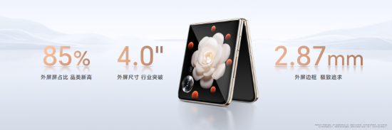 設(shè)計(jì)方面,榮耀Magic V Flip采用一塊4英寸外屏,這是目前業(yè)界最大的小折疊外屏,85%外屏屏占比、2.87mm外屏邊框均為同品類中頂尖水平。機(jī)身展開狀態(tài)下薄至7.15mm,折疊狀態(tài)下薄至14.89mm,重量約193克,用戶可以輕松地將其放入口袋或手提包中,帶來極致便攜的使用體驗(yàn)。