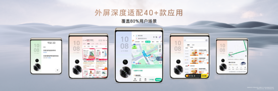交互方面,榮耀Magic V Flip支持全屏顯示和分區(qū)顯示,應(yīng)用區(qū)接近內(nèi)屏的16:9比例,多數(shù)應(yīng)用都能直接適配。通知區(qū)可常顯時間、即時顯示消息等,既方便隨時查看又不干擾使用體驗(yàn)。在全屏桌面卡片功能幫助下,用戶可以單手快速直達(dá)高頻應(yīng)用。目前,外屏已支持超40款應(yīng)用,覆蓋80%的用戶使用場景,無論玩游戲、看視頻、聽音樂還是社交聊天,都能在不展開手機(jī)的情況下盡享便捷。