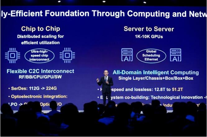 首先是算網進階,打造高效基座。在智算領域,高速網絡連接不僅不可或缺,而且至關重要,無論是芯片內裸Die互聯、芯片之間、服務器之間、DC之間,網絡連接技術的持續創新和突破,將極大的提升智算的性能與效率。
