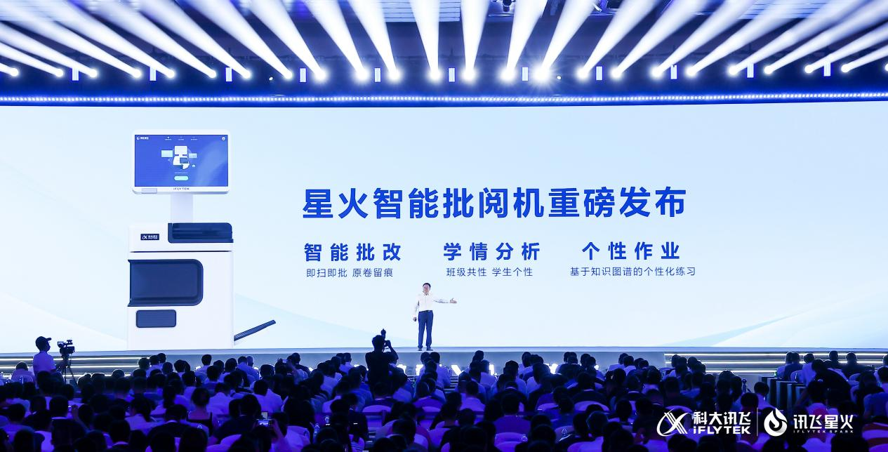 得益于底座大模型的升級(jí)和面向教育復(fù)雜場(chǎng)景的圖文識(shí)別效果進(jìn)一步提升,科大訊飛發(fā)布首款星火智能批閱機(jī),它集智能批改、精準(zhǔn)學(xué)情、個(gè)性學(xué)習(xí)于一體,它支持自由排版,不限紙張大小的作業(yè),在支持多學(xué)科多題型智能批改的同時(shí),還能即時(shí)生成多維學(xué)情報(bào)告,還為老師作業(yè)講評(píng)和面批輔導(dǎo)提供了素材。劉聰在現(xiàn)場(chǎng)演示了星火智能批閱機(jī)批改作業(yè)的全流程,15份學(xué)生作業(yè)半分鐘就能批改完成,批改模擬了真人筆跡,和老師平時(shí)批改作業(yè)幾乎一樣。