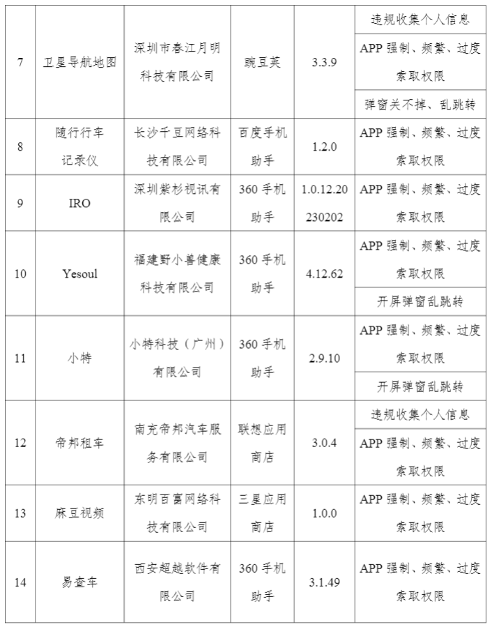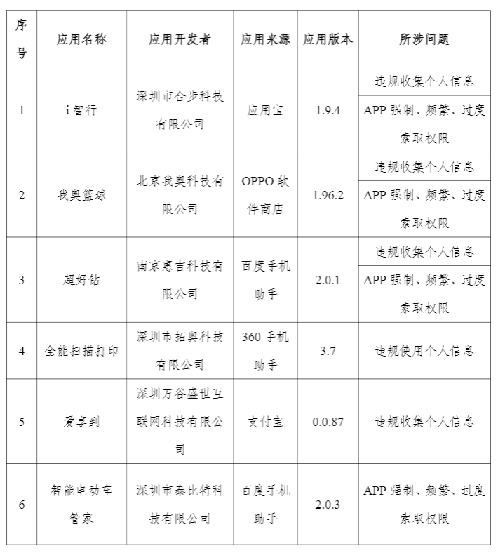 通報(bào)顯示,在50款A(yù)pp及SDK中,27款存在強(qiáng)制、頻繁、過度索取權(quán)限的問題,包括智能電動車管家(2.0.3)、衛(wèi)星導(dǎo)航地圖(3.3.9)等;20款存在違規(guī)收集個(gè)人信息的問題,包括i智行(1.9.4)、我奧籃球(1.96.2)等;7款存在超范圍收集個(gè)人信息的問題,如影音播放器(9.2.0)、愛電影視(1.4)等。