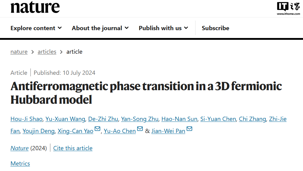相關研究成果于 7 月 10 日在線發表在國際學術期刊《自然》雜志上。