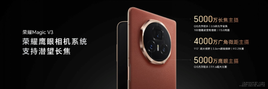 榮耀始終堅持雙輪驅動的產品主義,憑借在折疊屏領域近百億的研發投入與技術深耕,為折疊屏手機帶來了輕薄、可靠、高效的全新體驗,滿足了用戶對極致科技的追求。榮耀Magic V3和榮耀Magic Vs3的推出,再次在折疊屏手機領域實現諸多技術突破和功能革新,不僅通過全新榮耀魯班架構實現極致輕薄設計,更帶來第三代青海湖電池、航天特種纖維材質、榮耀視力舒緩綠洲護眼屏、雙衛星通信、2.5米防水等創新體驗,充分詮釋了榮耀用科技魔法為消費者創造極致體驗的價值主張。