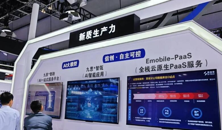 在本次大會上,思特奇重點(diǎn)展示了九思·智融、九思·智瓴和Emobile-PaaS。其中,九思·智融是思特奇AI生態(tài)體系中關(guān)鍵環(huán)節(jié),提供一系列平臺工具,打造大小模型從開發(fā)-訓(xùn)練-運(yùn)行-運(yùn)營的全流程閉環(huán)服務(wù);九思·智瓴依托思特奇九思大模型,以“小思數(shù)智人”為創(chuàng)新引擎,支撐政企、客服、營銷、網(wǎng)絡(luò)、運(yùn)營、質(zhì)檢等多場景應(yīng)用;Emobile-PaaS聚焦數(shù)字經(jīng)濟(jì)時代下的IT支撐需求,為不同行業(yè)客戶提供全棧云原生 PaaS 服務(wù)。