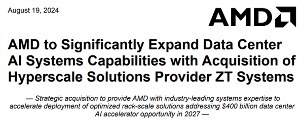 這項交易意味著AMD將吸納ZT大約2500名員工中的約1000名工程師。如果并購案能順利通過監管部門批準,交易預計在2025年上半年完成,并需要額外12到18個月時間來出售制造業務。
