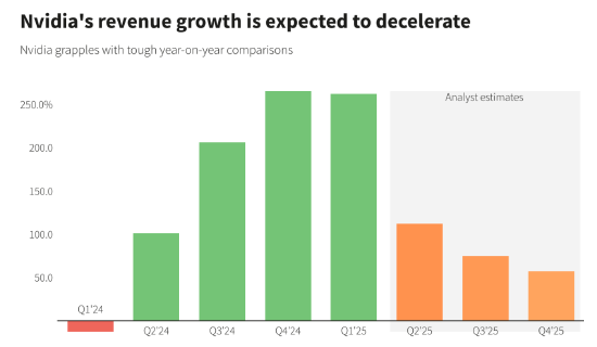 LSEG數據顯示,英偉達可能預計其測第三財季營收將增長75%,達到316.9億美元。這將結束其連續五個財季的三位數漲幅,同時也反映出很難再達到一年前的水平。當時,英偉達的營收飆升了約206%,達到181.2億美元。