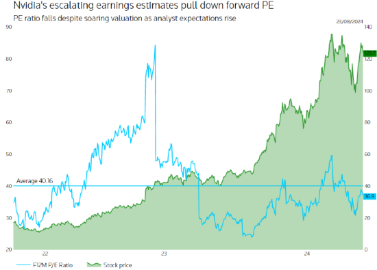 圖2:英偉達不斷上升的盈利預期拉低了市盈率
