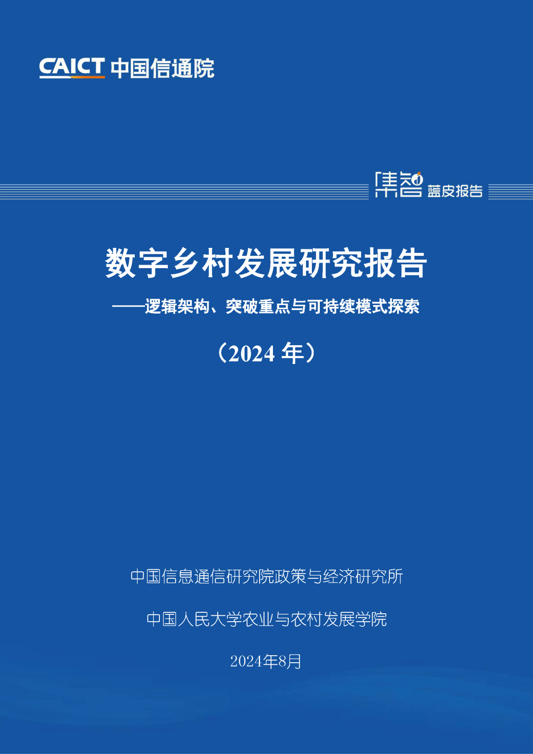 為探索構建數字鄉村各領域的可持續發展模式,扎實推進數字鄉村建設再上新臺階,中國信息通信研究院(簡稱“中國信通院”)政策與經濟研究所研究團隊聯合中國人民大學農業與農村發展學院,組織開展研究,編寫《數字鄉村發展研究報告——邏輯架構、突破重點與可持續模式探索(2024年)》。2024年8月4日,該報告在中國農村發展學會年會暨中國農村發展高層論壇(2024)“鄉村數字化轉型與農業新質生產力發展”分論壇正式發布。中國信通院政策與經濟研究所產業政策研究部副主任、中國農村發展學會理事兼數字鄉村專業委員會委員霍鵬代表研究團隊對報告進行了解讀。