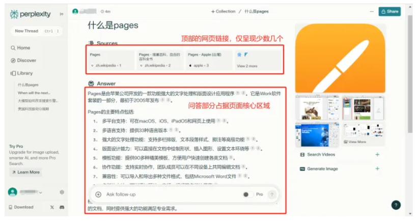 圖2 AI搜索產(chǎn)品Perplexity頁面布局