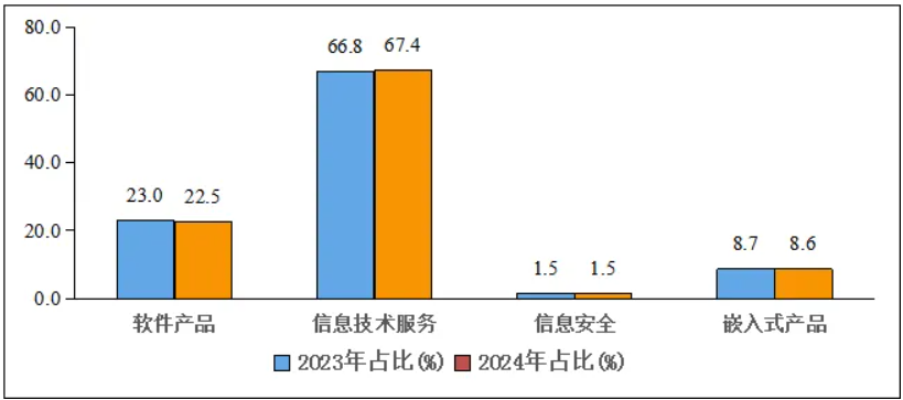 圖4 2023年和2024年1—7月軟件業分類收入占比情況