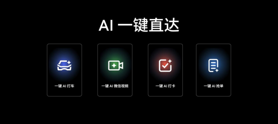 通過(guò)多功能 AI 按鍵,可快速實(shí)現(xiàn)包括一鍵搜索、一鍵打車(chē)、一鍵打卡、一鍵微信視頻以及自定義使用場(chǎng)景在內(nèi)的多種實(shí)用好用 AI 功能,只需一鍵,即刻開(kāi)啟智慧 AI 新生活。
